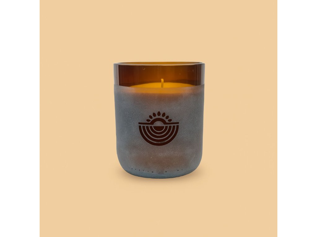 Sójová svíčka ve 200 ml skle z recyklované lahve. Ruční výroba, 100 % vegan.