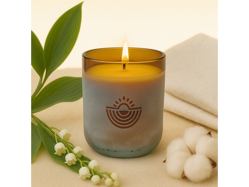 Sójová svíčka v upcyklovaném skle, ručně litá. Pro chvíle, kdy chceš zůstat ještě o chvíli v peřinách.